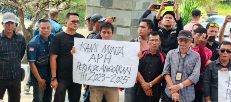 Massa yang tergabung dalam Aliansi Media Tubaba Bersatu, menggelar Demo di depan Gedung Dinas Komunikasi dan Informatika (Kominfo) Tubaba. Mereka menuntut transparansi Anggaran belanja publikasi dan Dana Hibah tahun 2023-2025. Senin 8/9/2025