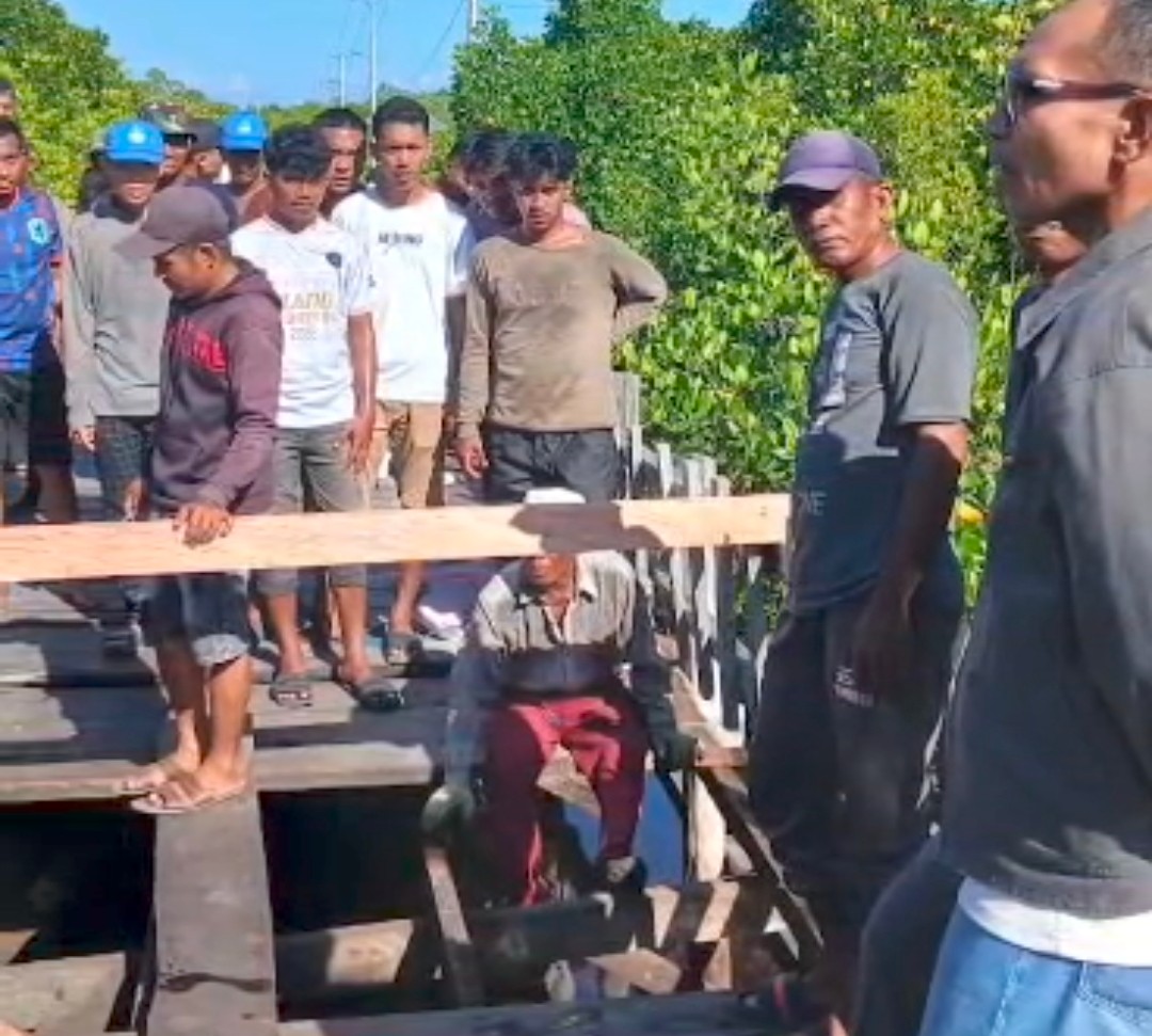 Perbaikan jembatan tersebut dilakukan secara gotong royong bersama warga setempat. Jembatan ini merupakan akses vital yang selama ini menunjang berbagai aktivitas masyarakat, mulai dari mobilitas harian hingga distribusi hasil tangkapan nelayan yang menjadi sumber utama penghidupan warga Pulau Osi.