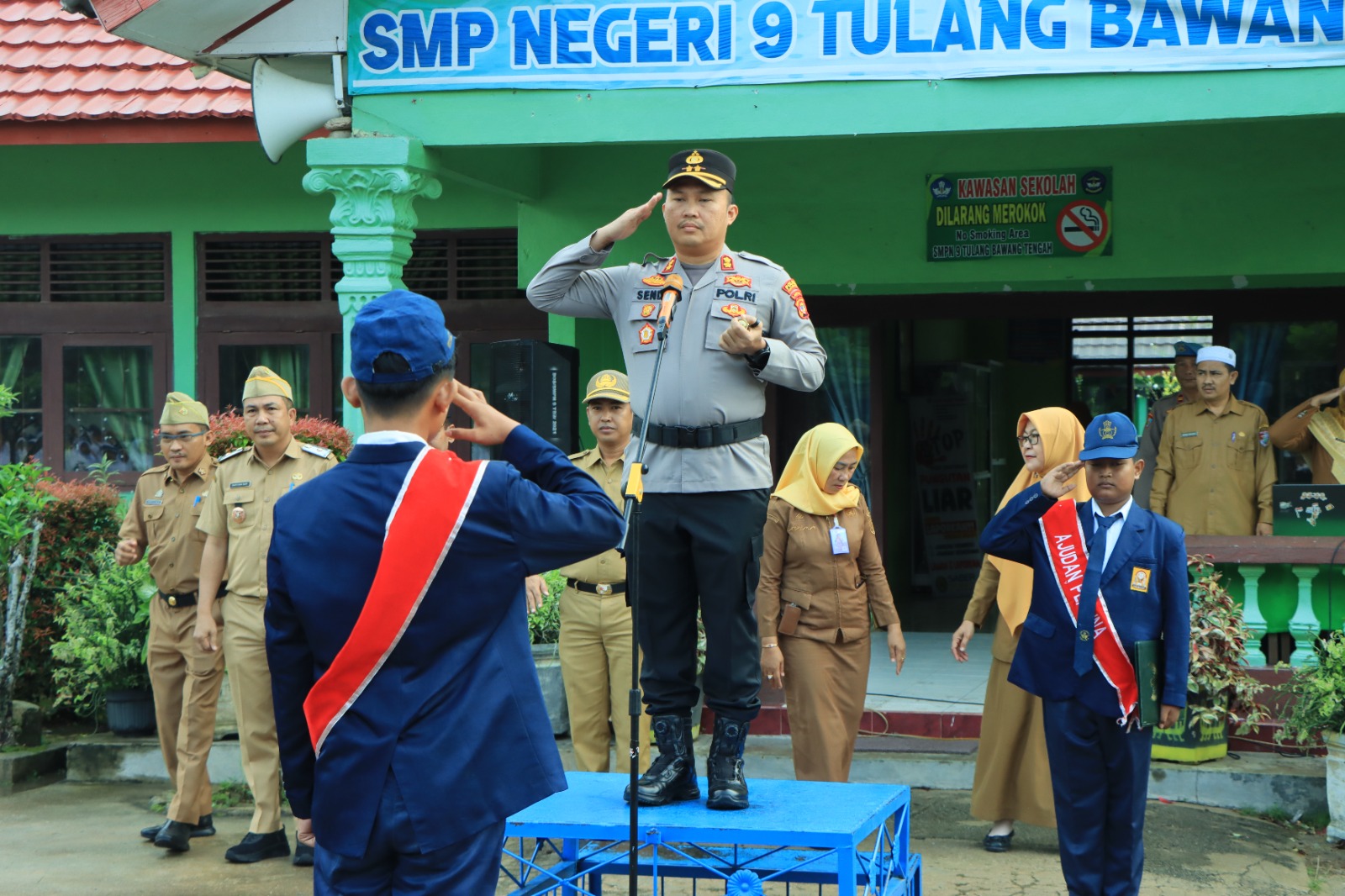 Kapolres Tulang Bawang Barat, AKBP Sendi Antoni, S.I.K., M.I.K., bertindak sebagai Inspektur Upacara Bendera di SMP Negeri 9 Tulang Bawang Barat. Dalam amanatnya, Kapolres menekankan pentingnya menjaga ketertiban, kedisiplinan, serta menjauhi narkoba dan berbagai bentuk kenakalan remaja.
