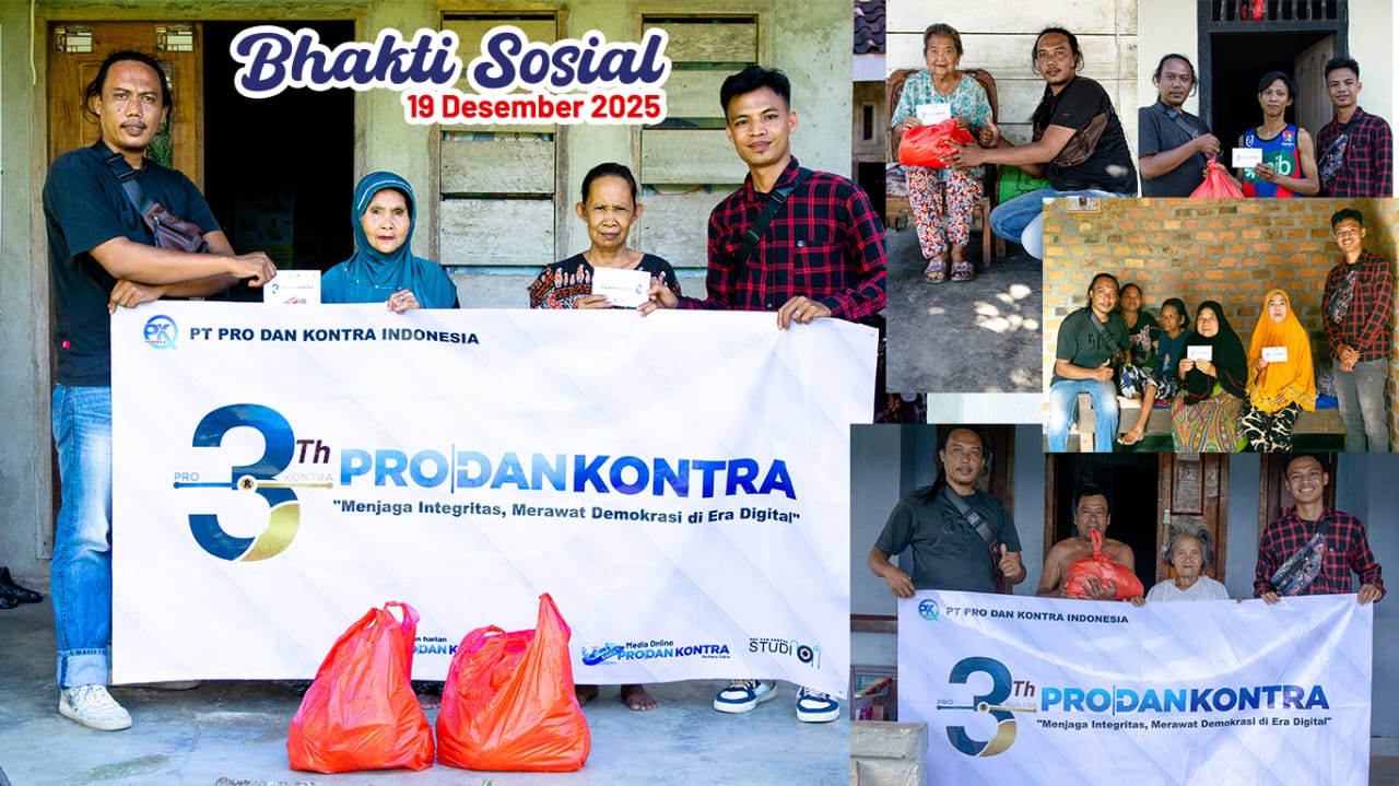 Dalam rangka memperingati Hari Ulang Tahun (HUT) ke-3, Media Pro dan Kontra menggelar kegiatan sosial dengan membagikan bantuan sembako dan santunan uang kepada warga kurang mampu serta janda jompo di Wilayah Tiyuh Penumangan dan Penumangan Baru, Kabupaten Tulang Bawang Barat, pada Jumat (19/12/2025).