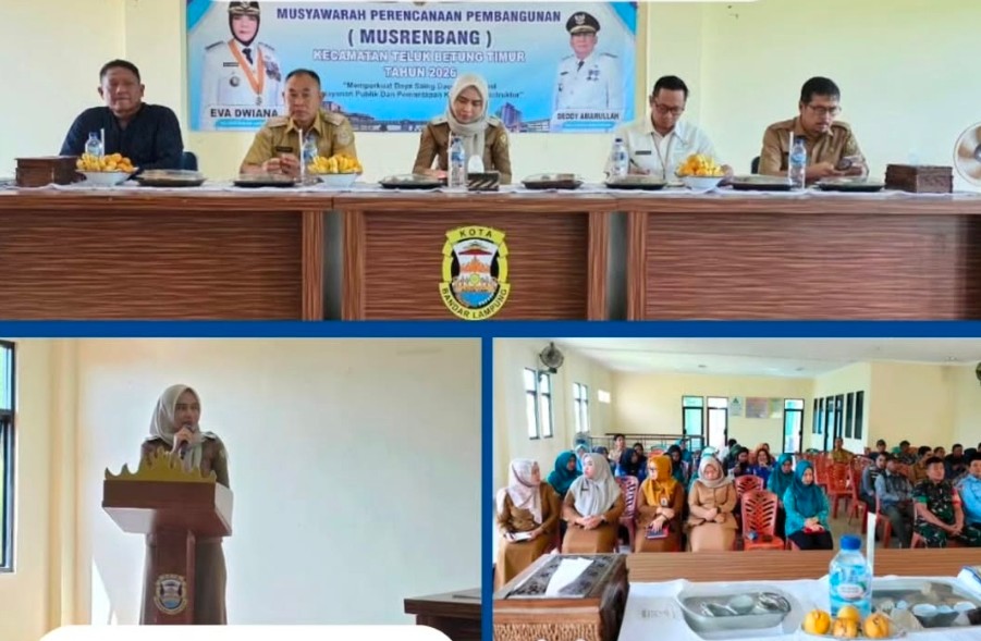 Musrenbang Kecamatan Teluk Betung Timur yang dilaksanakan di Kelurahan Sukamaju menjadi forum penting untuk menyerap aspirasi masyarakat, menyelaraskan usulan program, serta menetapkan skala prioritas pembangunan berbasis kebutuhan wilayah. Kegiatan ini diikuti oleh unsur kecamatan, kelurahan, perangkat daerah, tokoh masyarakat, serta perwakilan lembaga dan pemangku kepentingan setempat.