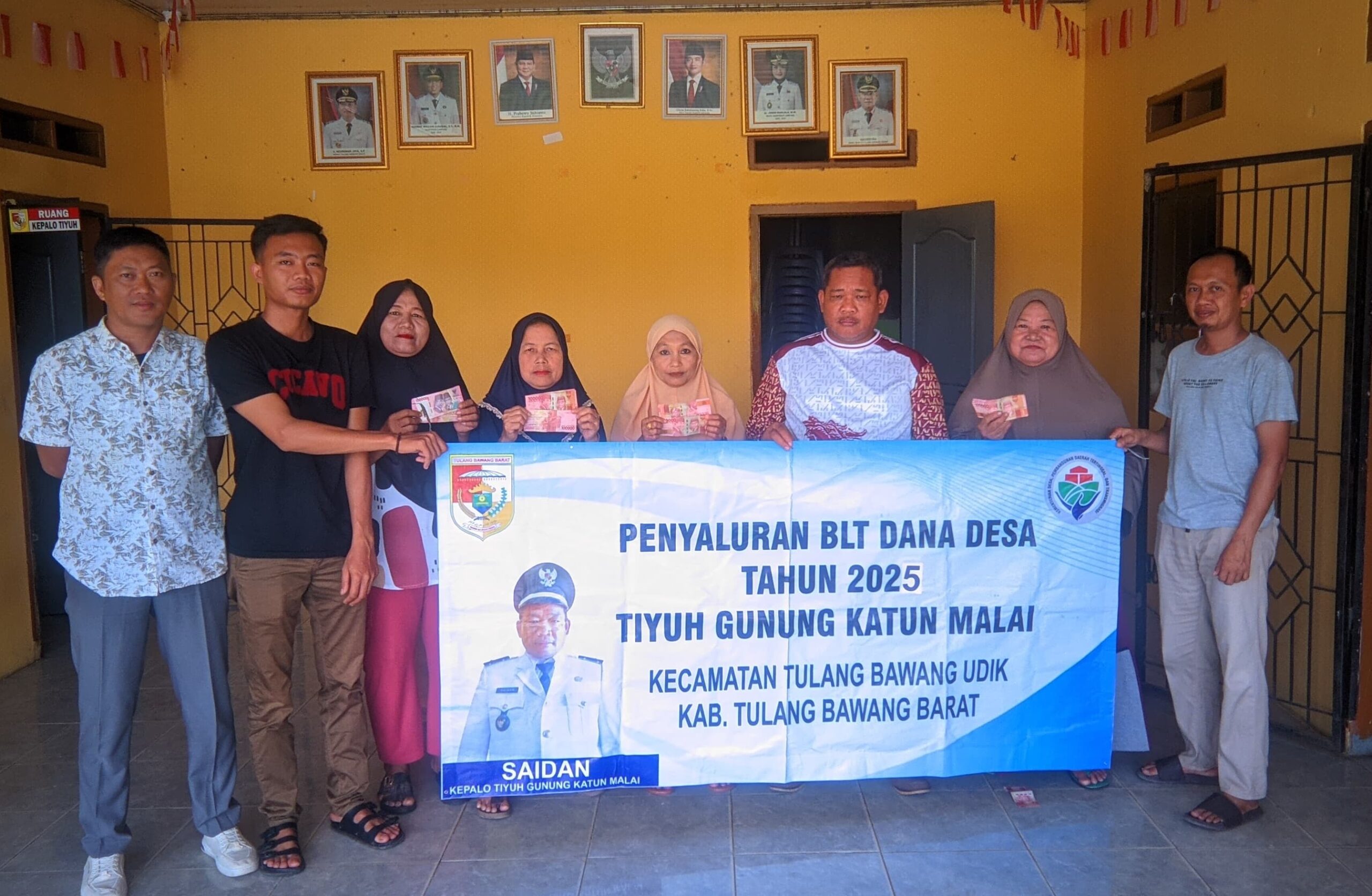 Pemerintah Tiyuh Gunung Katun Malai, Kecamatan Tulang Bawang Udik, Kabupaten Tulang Bawang Barat (Tubaba), menyalurkan Bantuan Langsung Tunai (BLT) Dana Desa untuk periode September–Oktober 2025 kepada lima Keluarga Penerima Manfaat (KPM), pada Rabu (09/10/2025).