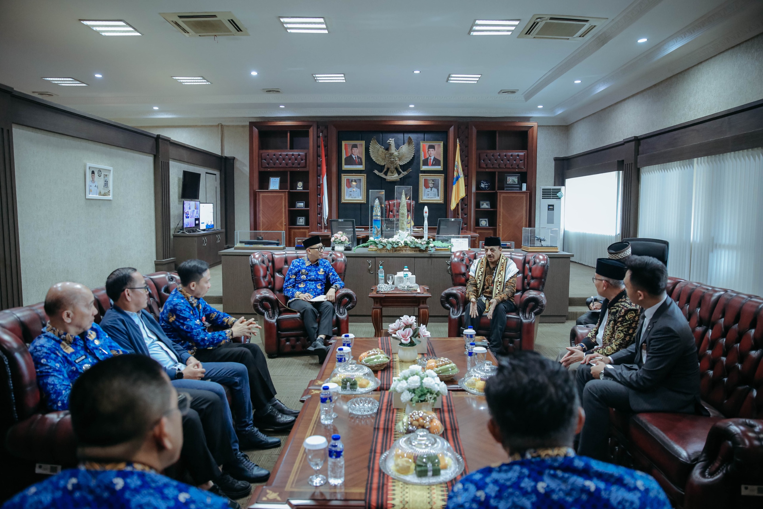 Suasana hangat dan penuh keakraban terasa saat Gubernur Lampung, Rahmat Mirzani Djausal menyambut kedatangan Duta Besar Palestina untuk Indonesia, Abdalfatah A.K. Alsattari, di ruang kerjanya, Senin (20/4/2026).