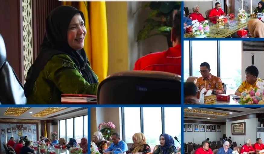 Wali Kota Bandar Lampung, Hj. Eva Dwiana, nutuki Rapat Koordinasi Kolaborasi HUT ke-18 TV One sai dilaksanakon di Masjid Al-Bakrie, Bandar Lampung, Kamis, 29 Januari 2026, di Ruang Rapat Wali Kota.